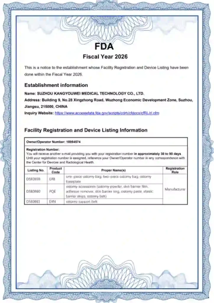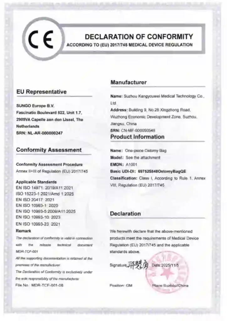 Our Soft Convex Ostomy Bag production facility operates under ISO 13485,CE and FDA Certified quality management system.Ensuring standardized production controls. Documented process validation. Regulated quality assurance procedures